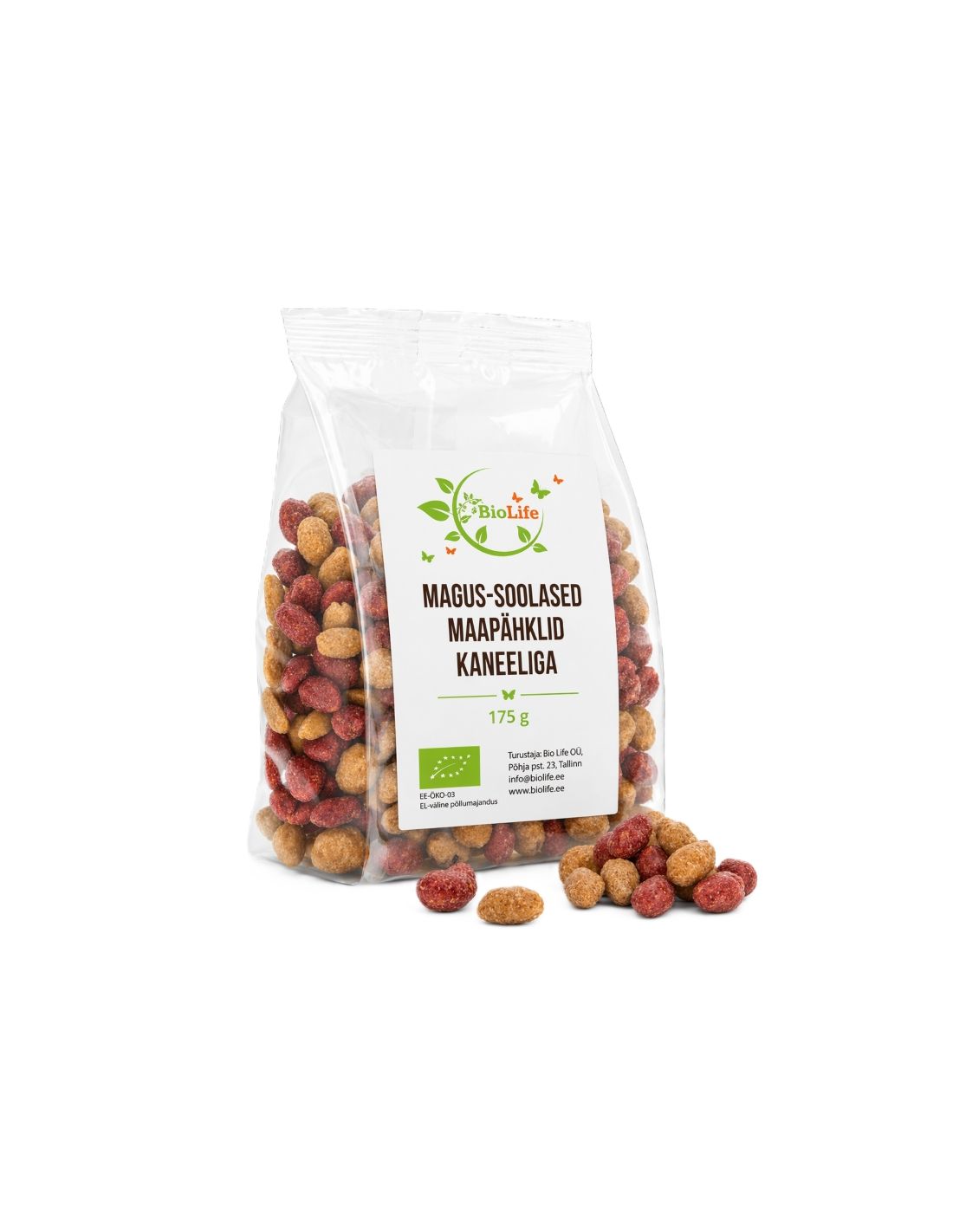 - röstitud magusad maapähklid soolaga (maapähkel, suhkur, glükoossiirup, sool, päevalilleõli, mesi, paksendaja kummiaraabik)