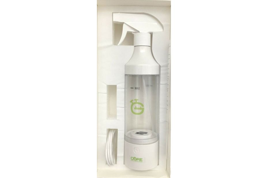 • Vanduo butelyje gali visiškai ištuštinti išsikrovusią bateriją. Tai gali sukelti problemų perkraunant butelį. Todėl nenaudojamas butelis turi būti tuščias. Kai akumuliatorius visiškai išsikrovęs, leiskite buteliukui kurį laiką įkrauti, tada atjunkite jį ir vėl įjunkite. Kelis kartus paspauskite mygtuką, kad mirksėtų raudona įkrovimo lemputė, rodanti, kad įkrovimas prasidėjo. Jei reikia, pakartokite OZONO PPM IR PRAŠmė Įprasto šalto (10 °C) vandens iš čiaupo (TDS 70) prietaisas vienu paspaudimu pasiekia daugiau nei 1 ppm (+ -10%). 1 ppm = 1 milijoninė dalis yra lygi 1 mg ištirpusio ozono litrui vandens. Ozono vanduo veikia kaip puiki valymo priemonė ir puikiai tinka paviršiams valyti. Norėdami nuvalyti paviršių ozono vandeniu, užpurkškite ant paviršiaus ir palikite paviršių kurį laiką drėgną prieš nusausindami. Norėdami gauti geriausius rezultatus, nuvalykite nuo paviršiaus matomus nešvarumus.