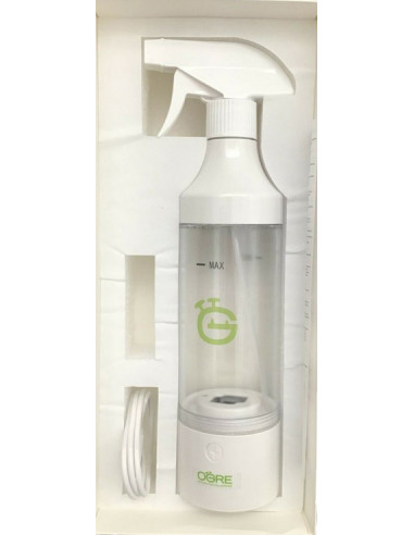 ATSARGIAI Jei to nepadarysite, galite susižaloti, sugadinti įrangą arba sugadinti gaminį. Garantija netaikoma, jei įrenginys naudojamas nesilaikant instrukcijų. Šis prietaisas skirtas tik vandentiekio vandeniui ozonuoti. Nenaudokite jo su kitais skysčiais, maistu ar priedais. Nenaudokite sūraus vandens. Pirmieji penki darbo ciklai nėra visiškai veiksmingi. Elektrolitinės plokštės yra padengtos apsaugine medžiaga, kuri pašalinama pirmą kartą naudojant mašiną. Išleiskite iš pradžių pagamintą vandenį. PAVOJUS! Vaikams! Pakavimo medžiaga nėra skirta vaikų žaidimams. Vaikams neturėtų būti leista žaisti su plastiko pakuotėmis. Tai gali sukelti užspringimo pavojų. PAVOJUS! Naminiams ir komerciniams gyvūnams! Elektros įranga gali kelti pavojų naminiams ir komerciniams gyvūnams. Gyvūnai taip pat gali sugadinti įrenginį. Todėl gyvūnai iš esmės turėtų būti laikomi toliau nuo elektros įrangos. ĮSPĖJIMAS! Netaisykite ir nekeiskite EOD EORG purškimo buteliuko. Visada nuneškite prietaisą į profesionalias dirbtuves arba kreipkitės į gamintojo techninės priežiūros centrą. ĮSPĖJIMAS! Natūralios gumos komponentai gali suirti arba išdžiūti po ilgo sąlyčio su ozono vandeniu. Kai kurie lengvai oksiduojami metalai ir metalų lydiniai gali oksiduotis ilgai naudojant. Pavyzdžiui, vario, žalvario ir cinko plokštės. ĮSPĖJIMAS! Nemerkite prietaiso į vandenį ir neleiskite vandens patekti į USB prievadą. ĮSPĖJIMAS! Neplaukite prietaiso indaplovėje. ĮSPĖJIMAS! Nekraukite įrenginio greituoju įkrovikliu! Jei patekus į akis vanduo, kuriame yra ištirpusio ozono, sukelia akių dirginimą, 5 minutes plaukite akis dideliu kiekiu švaraus vandens be ozono. Išimkite kontaktinius lęšius. Jei simptomai neišnyksta, skambinti gydytojui Ilgai įkvėpus iš vandens garuojantį ozoną gali sudirginti kvėpavimo takus. Jei atsiranda simptomų, išneškite į gryną orą. Jei simptomai išlieka, kvieskite gydytoją. Įtraukta – 300 ml (1,7 uncijos) butelis – Mikro-USB įkrovimo laidas – Vartotojo vadovas PRODUKTO SPECIFIKACIJOS TŪRIS 300 ml – svoris: 290 g- Dydis: 60 x 190 / 277,5 mm – Bako talpa: 250 ml (8,45 uncijos) AKUMULIATORIUS – Elektra įkrovimui: DC 5V 1A – Baterijos veikimo laikas: 400 pilnų įkrovimų – Visiškai įkrauti proceso ciklai: apytiksl. 20 ciklų – Akumuliatoriaus įkrovimo laikas: 4 valandosDĖMESIO! Nekraukite įrenginio greituoju įkrovikliu! Naudokite sieninį įkroviklį, kurio išėjimo įtampa yra 5,0 V ir srovė 1,0 A. Tinkamos kompiuterių USB prievado išvesties vertės. BENDRAI, PRAKTIKOJE 300 ml purškimo buteliukas 1 paspaudimas Palaikomasis vizualiai švarių paviršių valymas/dezinfekavimas, rankų dezinfekcija 2 spustelėkite Intensyvus nešvarių paviršių valymas/dezinfekavimas 3 spustelėkite Labai patvarios dėmės ir kvapai pvz. drabužiai / bataiNAUDOJIMO BŪDAI ✔ Išpurkškite ir palikite kurį laiką, tada nusausinkite. ✔ Visiškai panardinkite į ozono vandenį, patrinkite ir leiskite išdžiūti arba nusausinkite. ✔ Purškite ant audinio ir nuvalykite dezinfekcijai (naudokite tik šį metodą elektros įrangai). PASTABOS Valydami pradėkite nuo vieno proceso ciklo ir jei išvalytas vanduo nėra pakankamai efektyvus pagal paskirtį, pakartokite ciklo procesą norimam efektui pasiekti, bet ne daugiau kaip 5 kartus iš eilės. PASTABOS Šis prietaisas buvo visiškai išbandytas, kad butelyje liktų vanduo.