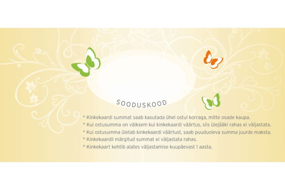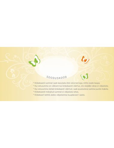 * Dovanų kortelės suma gali būti naudojama vienam pirkiniui vienu metu, o ne išsimokėtinai.