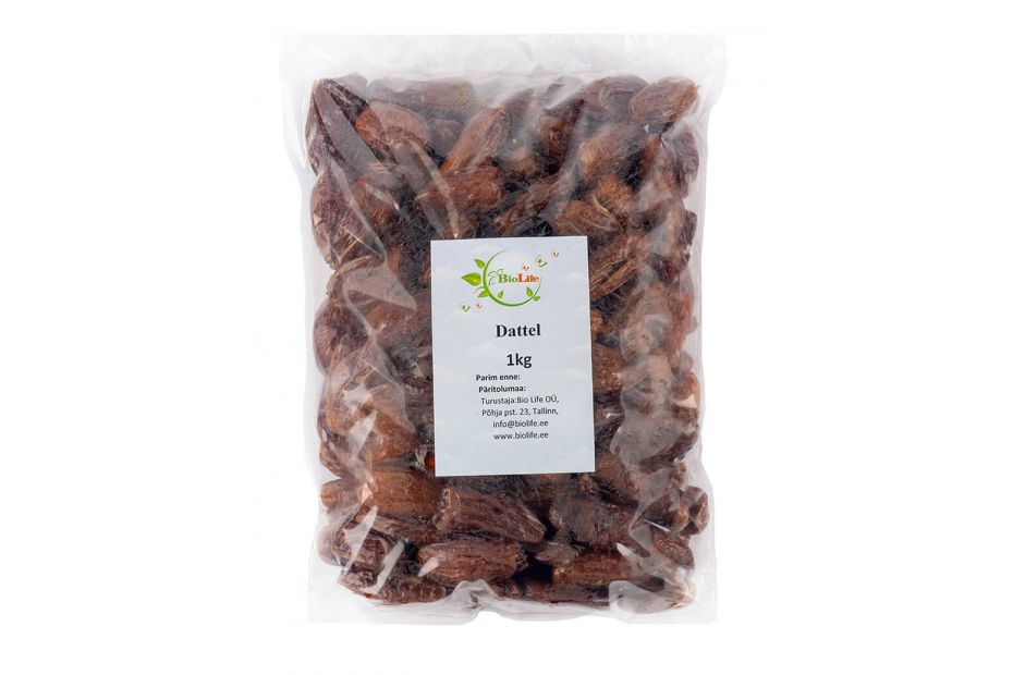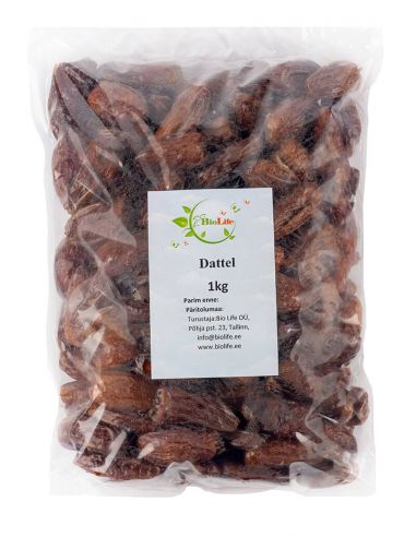riebalai 0,5 g (iš jų sočiųjų 0,1 g)skaidulinių medžiagų 7.1 gbaltymai 2,5 gdruska 0,05 gKaip laikyti datas namuose? Vaisius geriausia dėti vėsioje vietoje, optimalus yra šaldytuvo skyrius daržovėms ir vaisiams. Jei esate laimingas didelių šių vaisių atsargų savininkas, tuomet sandariai uždarytoje plastikinėje (ar stiklinėje) talpykloje, šaltyje, jie gali būti laikomi ištisus metus, o šaldiklyje – 4-5 metus! Parduodant šie vaisiai gali būti konservuoti, džiovinti arba švieži – tokius egzempliorius geriausia valgyti iš karto, dažniausiai konservuotus ant pakuotės nurodoma laikymo data. Būtent tuos vaisius, kurie parduodami dideliais kiekiais, galima laikyti ilgiausiai, apie juos kalbėjome aukščiau. Kaip laikyti datas popieriniame maišelyje? Tokiomis sąlygomis vaisius galima laikyti apie 2 mėnesius, vėlgi šaldytuve. Niekada nepalikite vaisių ten, kur jie bus veikiami tiesioginių saulės spindulių, karštoje vietoje ar be apsauginės pakuotės – jie labai greitai suges arba išdžius.