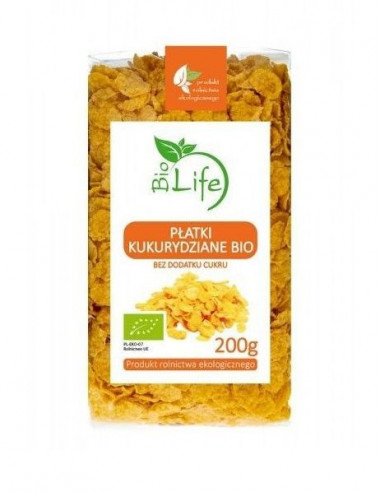Ekologiški kukurūzų dribsniai, pagaminti tik iš ekologiškų kukurūzų, be priedų, suteikia saugumo jausmą, kai juos duodate vaikams pusryčiams. Jie puikiai skanūs su jogurtu, vieni arba su džiovintais vaisiais, kakava, pienu ar riešutais ir medumi.