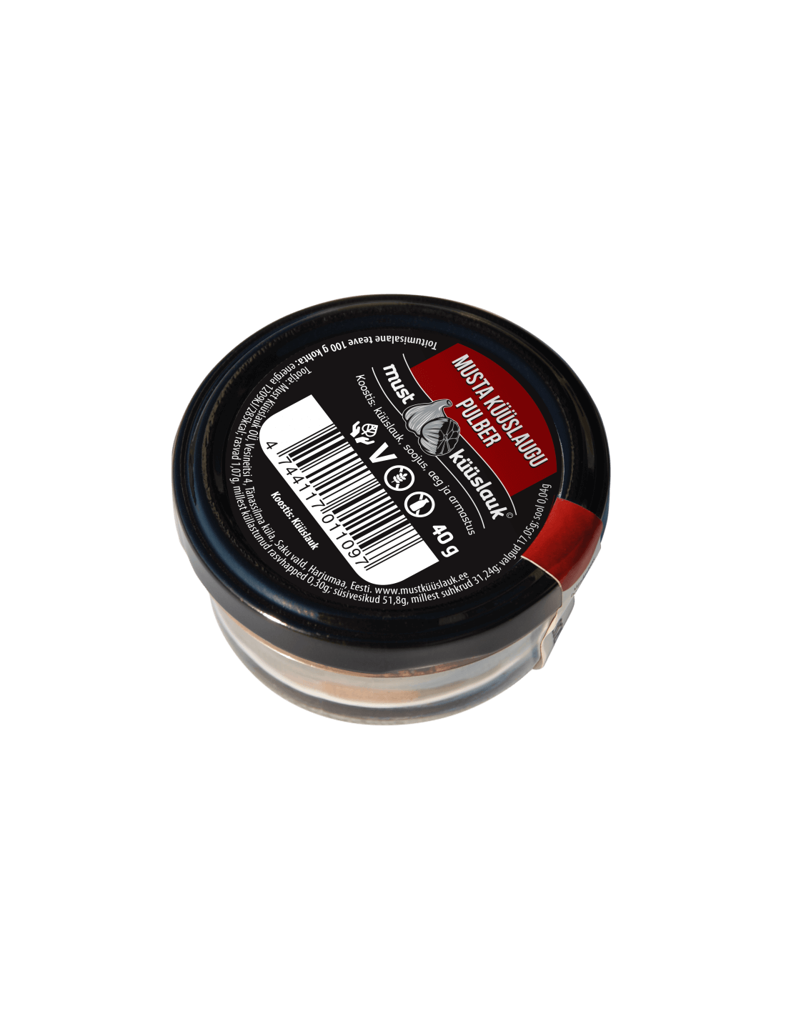100% česnako! Gaminant juodųjų česnakų miltelius nededama jokių kvapiųjų medžiagų ar konservantų.