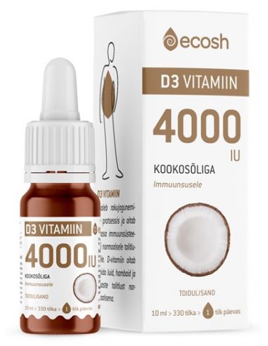 D3 VITAMIIN, 4000-IU tilk, kookosõliga 10ml